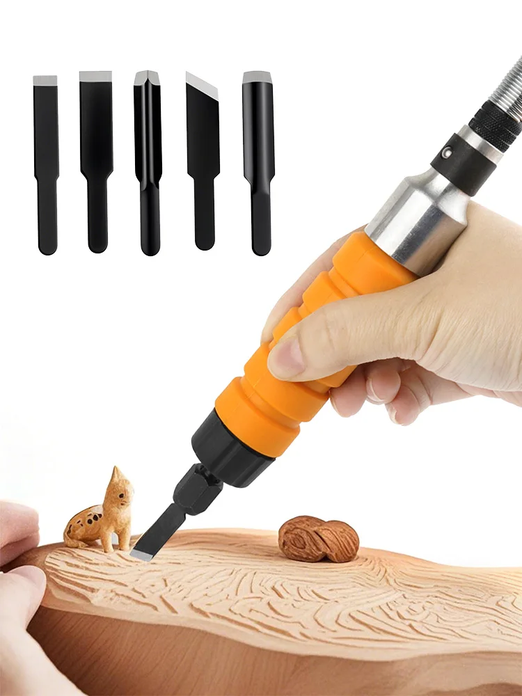 7PCS Electric chisel Carving Tool Wood carving machine Woodworking chisel (with 5 chisel, a wrench)